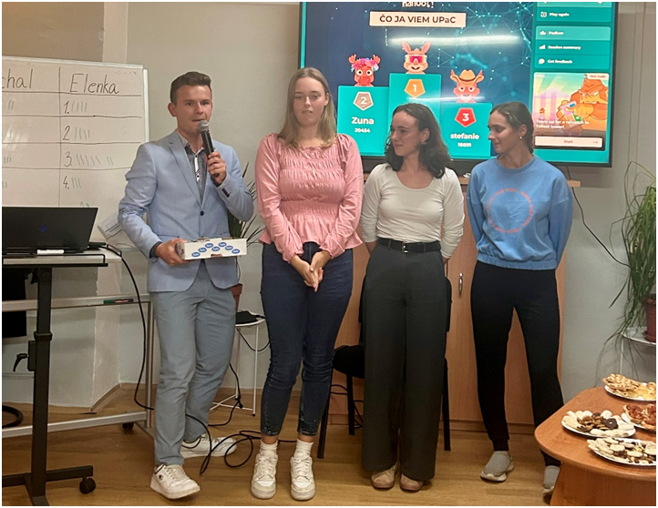 Do súťaže boli zainteresovní nielen koordinátori pastoračného centra – Michal, Elenka, Ema a Miroslav, ale aj viacerí študenti z rozličných odborov, ktorí si prišli oddýchnuť a zároveň preveriť svoje vedomosti. Nechýbali ani pátri z pastoračného centra, páter Milan a páter Tomáš, ktorí svojou prítomnosťou podporili priateľskú atmosféru večera. Po celý čas bol prítomný smiech, napätie a spoločné povzbudzovanie.