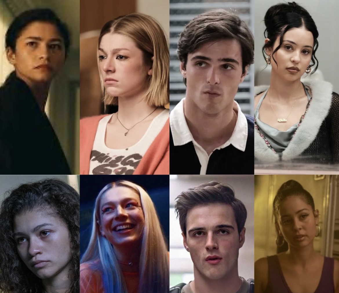 Medzi hlavné postavy patrí Rue – mladé dievča, ktoré je ťažko závislé na drogách, je však vo svojom vnútri veľmi citlivá a inteligentná. Jules je trans dievča, snaží sa hľadať sviní identitu a miesto kam patrí. Nate je chlapec, ktorý má problemy s násilnou povahou. Je velmi manipulatívny a často má problémy s rodinnými alebo romantickými vzťahmi. Maddy je veľmi sebavedomá a výrazná mladá žena. Je lojálna ale impluzívna. Cassie je romantická a príliš citlivá. Nemá šťastie v láske a vo svojej vlastnej povesti. Kat je nevýrazne dievča, ktoré sa pomocou internetu zmení na sebavedomú mladú ženu. Hľadá sa. Lexi je staršia sestra Cassie. Je tichšia, má skôr svoj vlastný vnútorný svet. Jej život sa začne meniť, keď sa postupne zamiluje do drogového dealera.