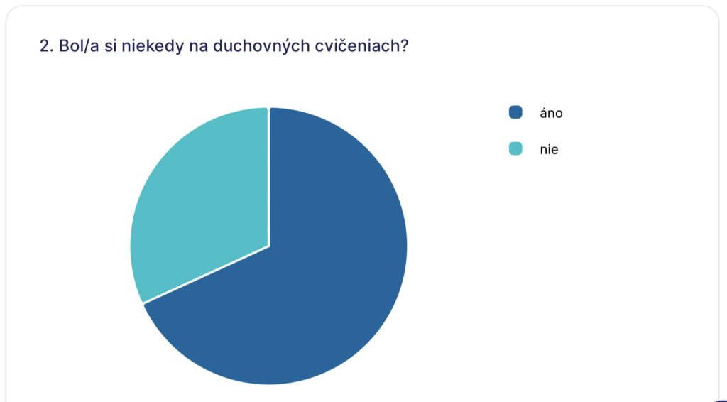 Druhá otázka bola dosť podobná tej prvej, zmena otázky nastala iba v tom, či sa respondenti zúčastnili aj na duchovných cvičeniach.
