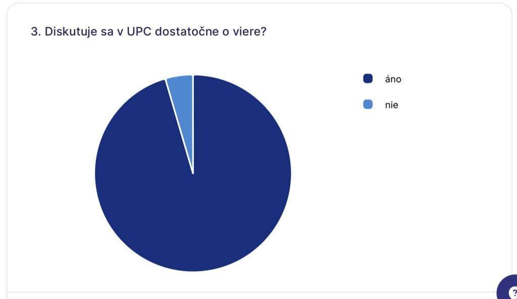 Tretia otázka bola podľa môjho názoru najdiskutabilnejšia. Pýtala som sa, či sa v UPaC diskutuje dostatočne o viere.